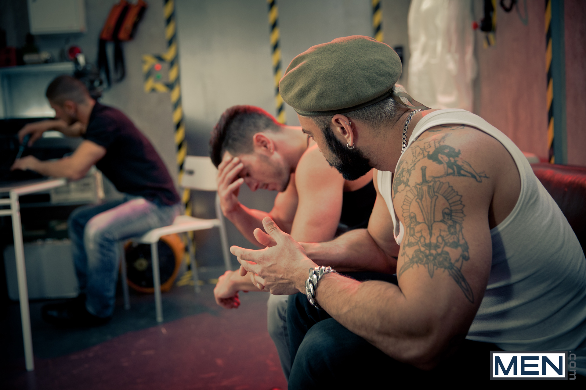C’est la fin du monde , mais à présent Paddy O’Brian & Dato Foland sont en sécurité dans un bunker en compagnie du très musclé Rogan Richards. Avec le temps, les garçons ne tiennent plus et ont rudement besoin de faire laisser échapper leurs ardeurs , et c’est Dato qui va se porter volontaire pour se prendre une double pénétration anale par ses deux acolytes.