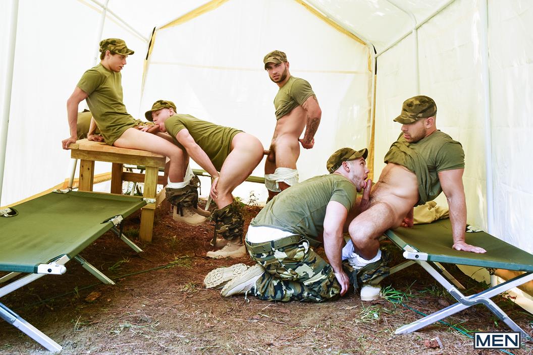 Les militaires sont envoyés à la guerre, mais pas avant une dernière débauche de sexe! Zach Country, le costaud Damien Stone, le beau gosse Vadim Black , l’athlète Brandon Evans et le baraqué Blaze Austin se font sucer la bite avant de désigner le passif qui sera dominé. Ces hommes au corps musclés savent comment se faire plaisir et ont hâte de se débarrasser d’une charge crémeuse de sperme.