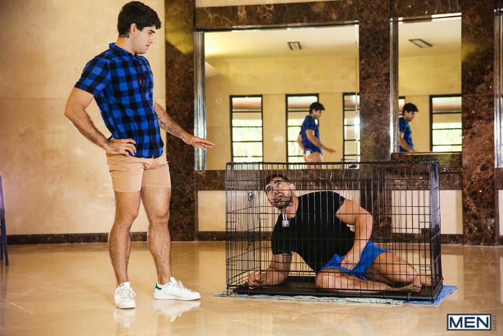 Damien a découvert que son mari le trompe et pour le punir, il l’enferme dans la cage du chien durant la nuit. Il se trouve justement que le matin suivant le voisin payé pour promener le chien tombe dessus et décide de profiter du gars en se lançant dans toutes sortes de perversions sexuelles et petits jeux coquins.